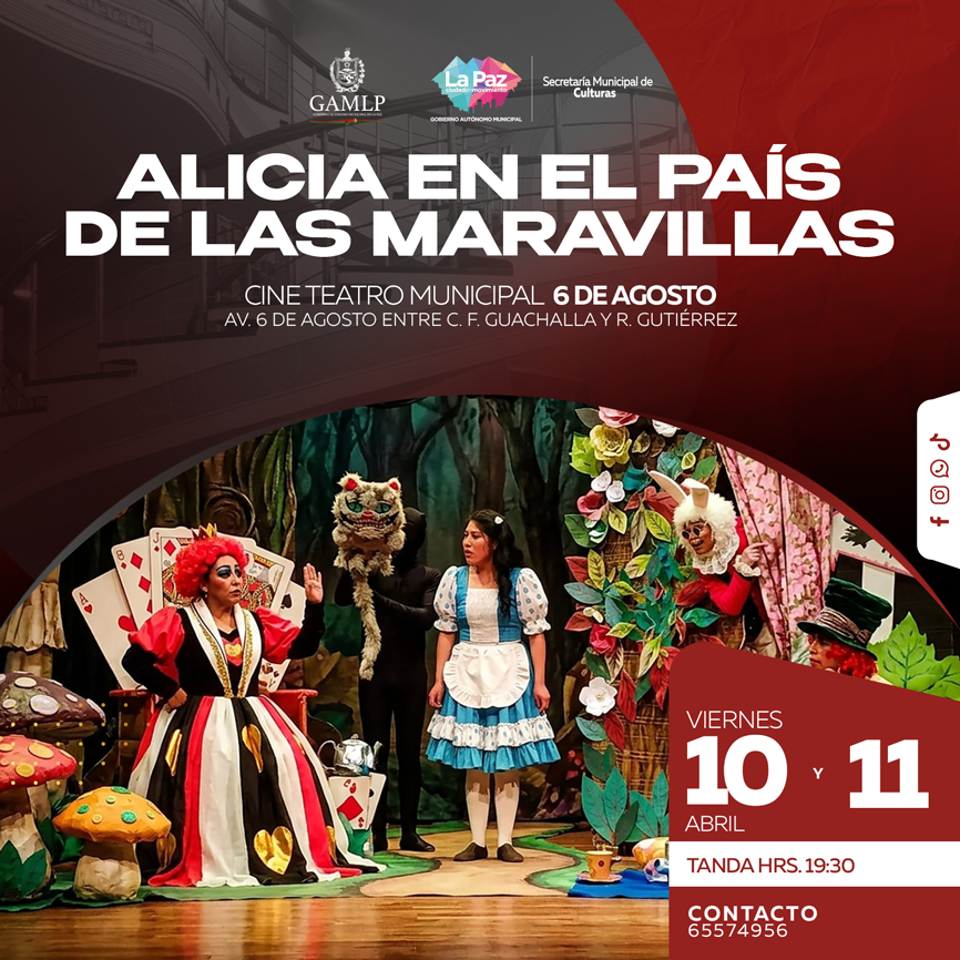 Patas Arriba Teatro y Artestudio Bolivia presenta: ALICIA EN EL PAÍS DE LAS MARAVILLAS, un clásico de la literatura universal de Lewis Carroll adaptada al teatro.