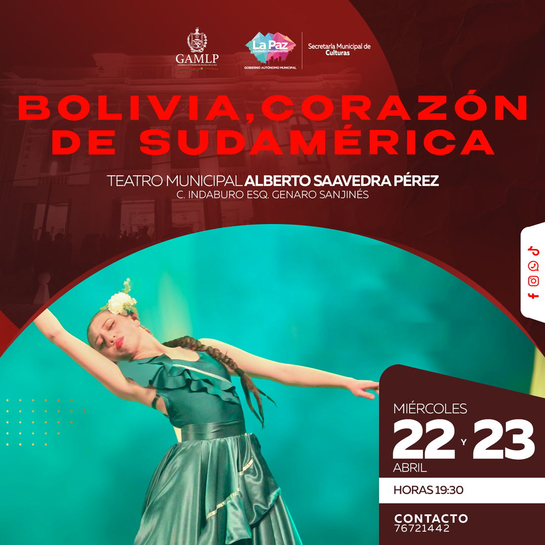 “Ballet Folklórico de Bolivia Manuel Acosta (BafoBol) presenta ‘Bolivia, Corazón de Sudamérica’, un espectáculo que celebra la riqueza cultural y la diversidad de Bolivia. A través de las danzas y tradiciones, el folklore boliviano se fusiona con diferentes técnicas de danza, brindando una propuesta universal que conecta al continente y muestra la esencia del alma sudamericana.”
