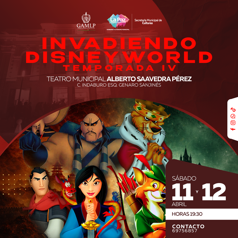 La compañía Psycho Circus regresa con la temporada IV de Invadiendo DisneyWorld, esta vez conquistando el escenario del Teatro Municipal Alberto Saavedra Pérez con dos historias legendarias: Robin Hood y Mulan.
