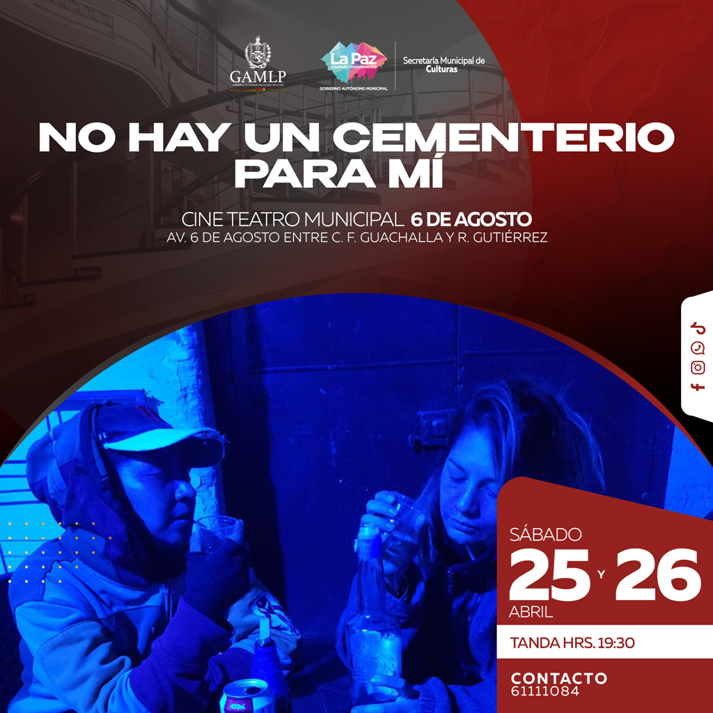 No hay un cementerio para mí es una obra en tres actos que cuenta la historia de Claudia, una mujer que sufre violencia en su hogar y termina en la calle, enfrentando el abandono y la desesperanza. En su punto más crítico, decide acabar con su vida en un “cementerio de elefantes”, un símbolo de olvido e invisibilidad.